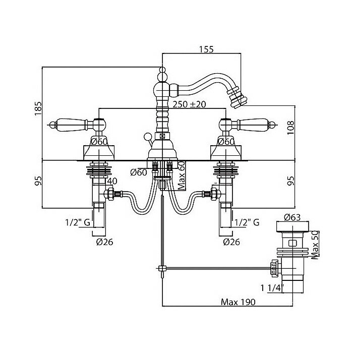 Cezares Смеситель для биде на три отверстия CEZARES FIRST-BBS2-01-Bi