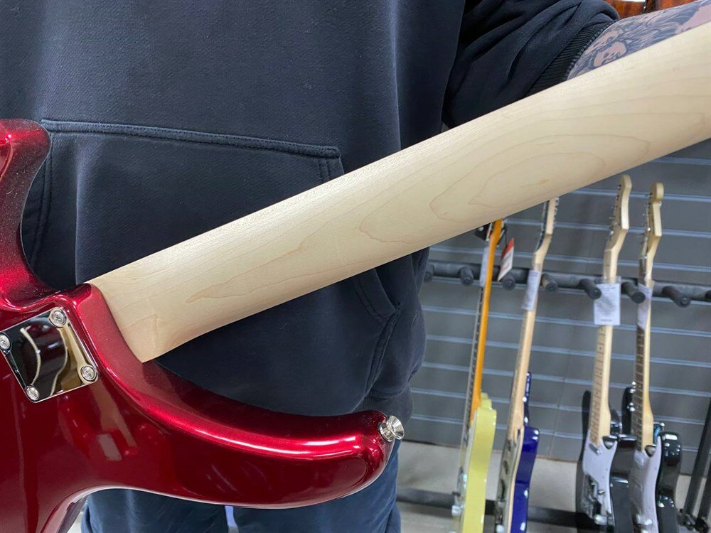 * Звукосниматели почти не шумят. * Легко крутить анкер - доступ к болту снизу. * Универсальность - P-J звукосниматели. * Крутилки - "1. Громкость P, 2. Громкость J, 3. Тон обоих" (По-моему куда лучше чем с крутилкой "P-J микс") * Ля какая, в цвете "красный металлик" с чёрной головой грифа выглядит просто отлично (но это субъективно :3) |