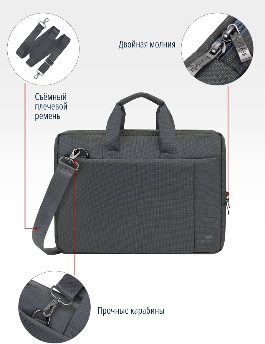 Сумка для ноутбука 15.6, RivaCase Central, серая, 8231 Grey