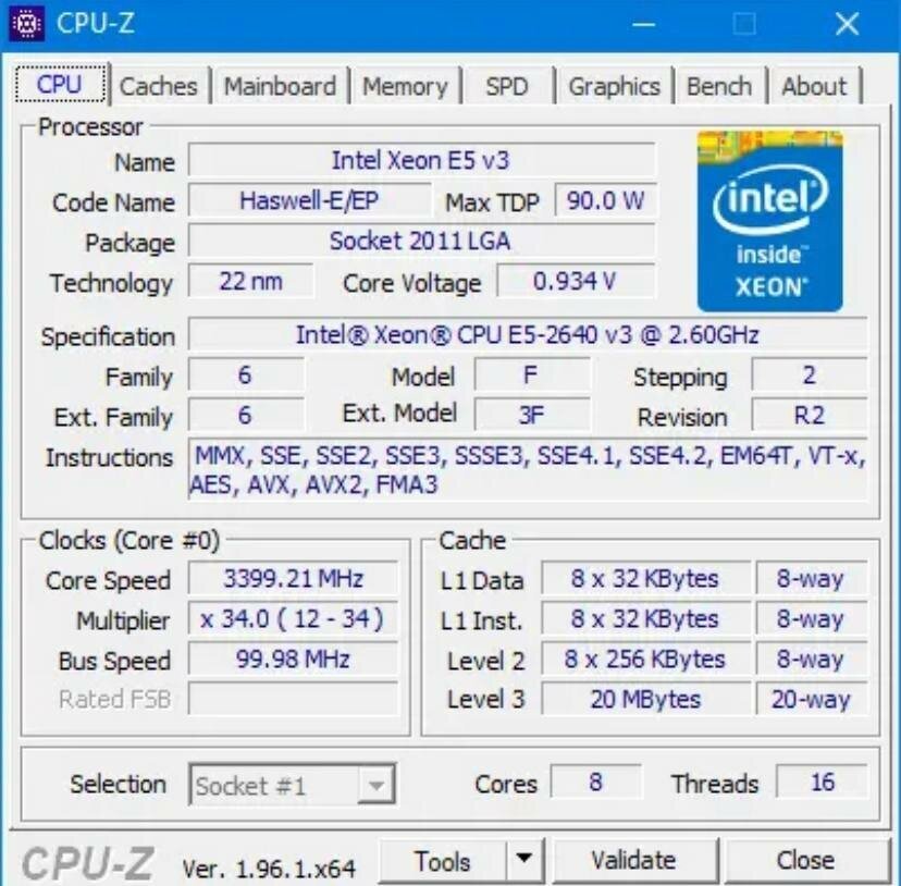 Процессор Intel Xeon Processor E5-2640v3 (8 ядер/16 потоков)
