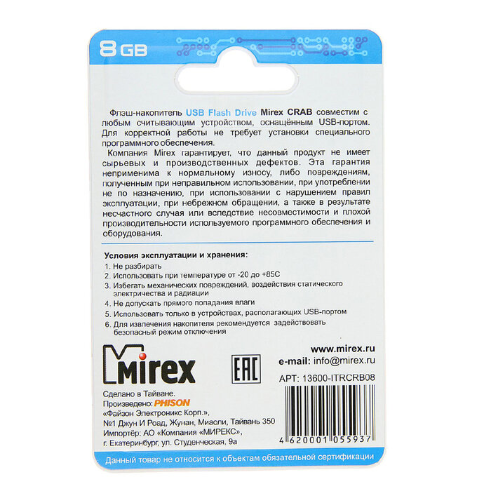Ниже Вы можете прочитать отзывы на Флешка USB Flash Drive Mirex CRAB 8GB, ознакомится с подробными характеристиками, посмотреть интересные обзоры и фотографии на Флешка USB Flash Drive Mirex CRAB 8GB.