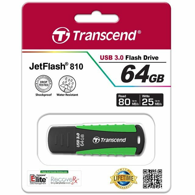 Transcend 64GB JetFlash 810, USB 3.0, Резиновый, Черный/Зеленый TS64GJF810