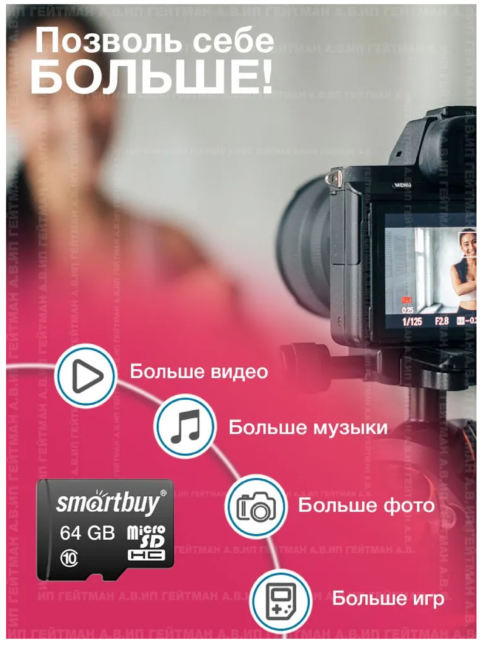 СохранитьКарта памяти 64Gb - SmartBuy Micro Secure Digital HC Class 10 SB64GBSDCL10-01 с переходником под SD (Оригинальная!) интересное: