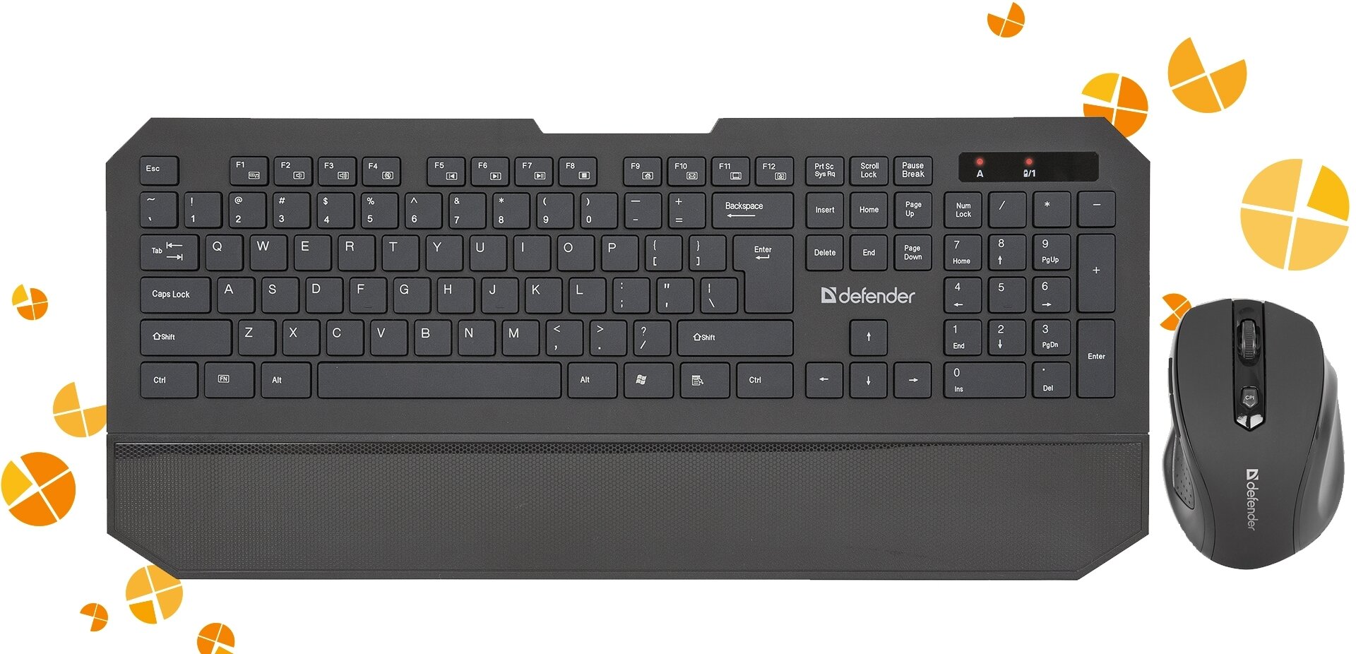 Набор беспроводной DEFENDER Berkeley C-925, комплект 3 шт., клавиатура, мышь 5 кнопок + 1 колесо-кнопка, черный, 45925