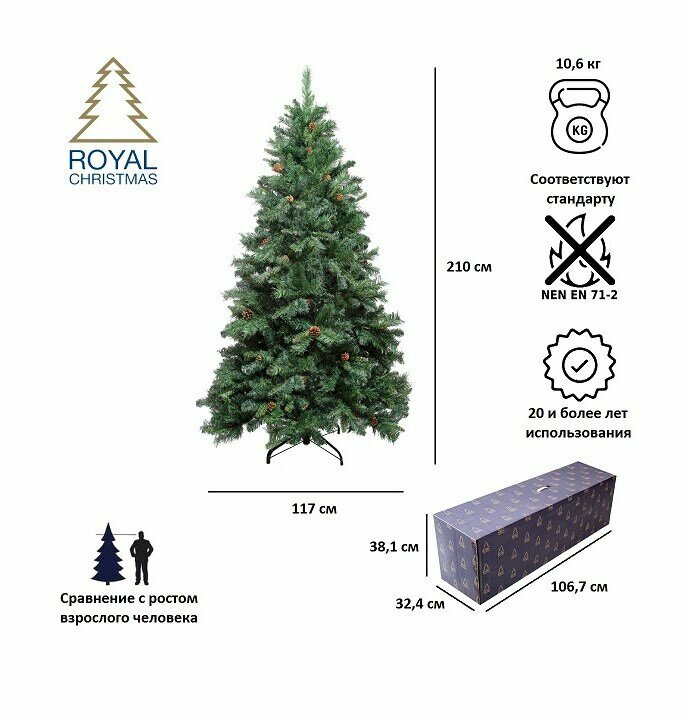 Royal Christmas Ель Royal Christmas Detroit с шишками 527210 (210 см)