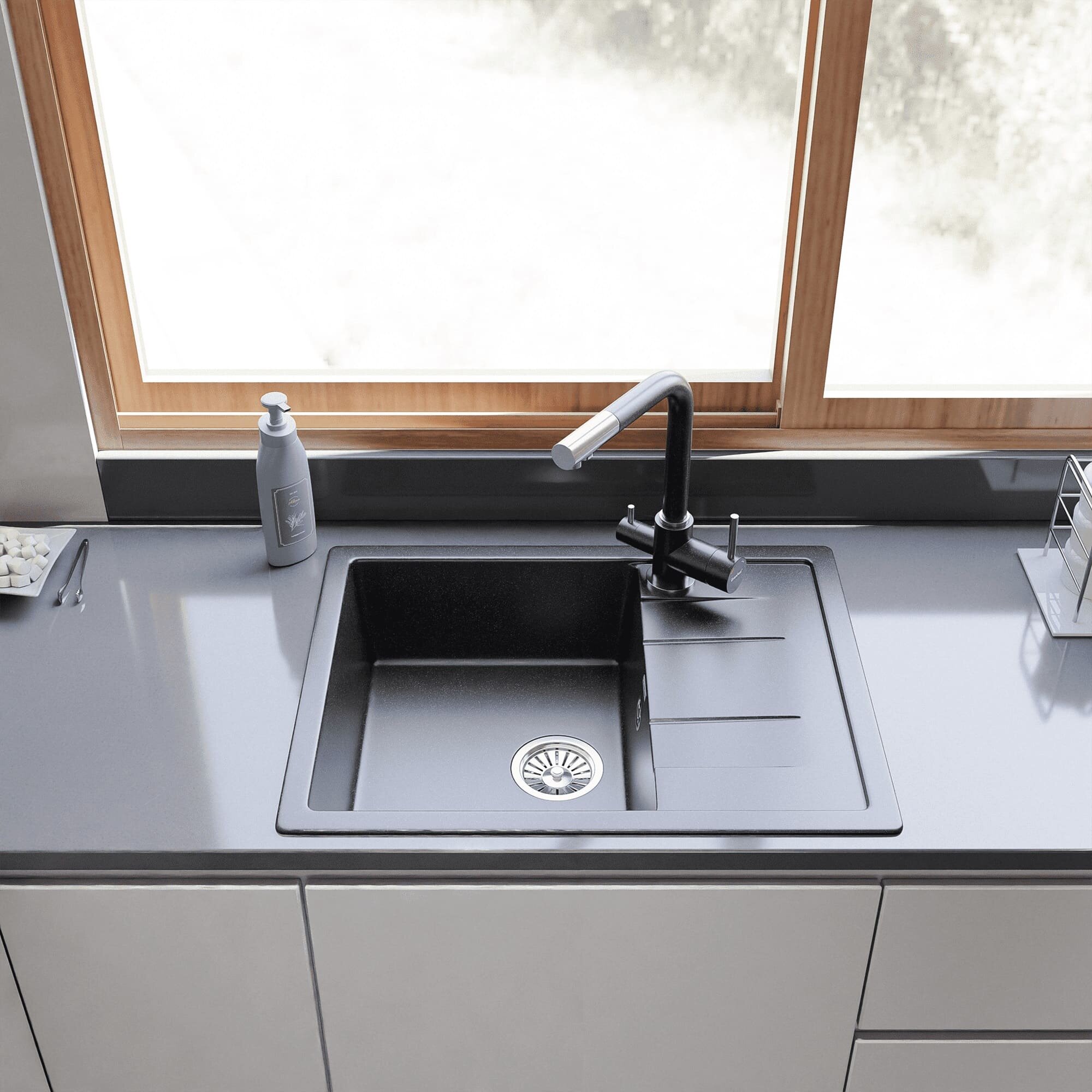 Врезная кухонная мойка 65 см, GranFest Quadro GF-Q650L, черный