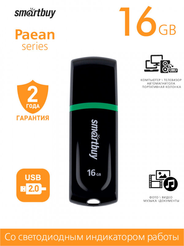Ниже Вы можете прочитать отзывы на USB Флеш-накопитель Флеш-диск 16 GB, SMARTBUY Paean, USB 2.0, черный, SB16GBPN-K, ознакомится с подробными характеристиками, посмотреть интересные обзоры и фотографии на USB Флеш-накопитель Флеш-диск 16 GB, SMARTBUY Paean, USB 2.0, черный, SB16GBPN-K.
