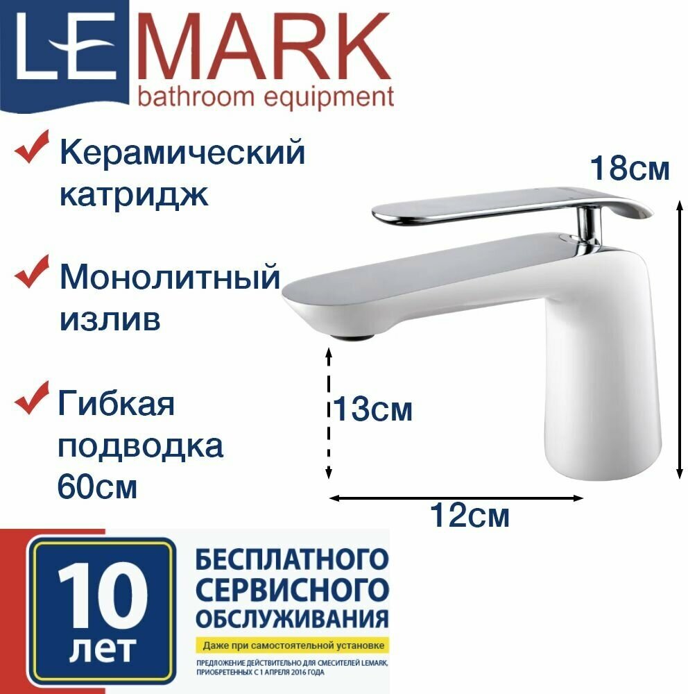 Смеситель для раковины (умывальника) Lemark Melange LM4906CW белый/хром