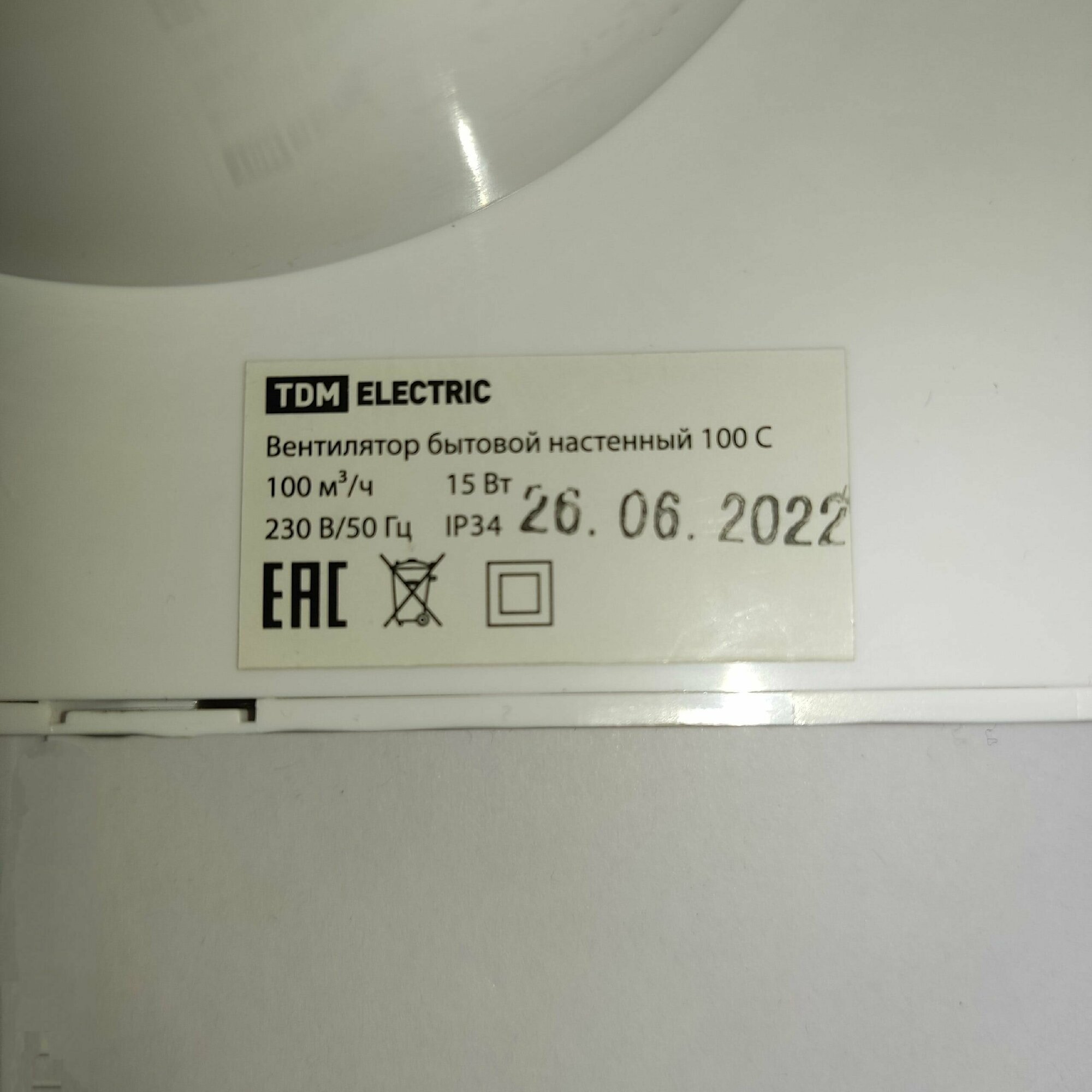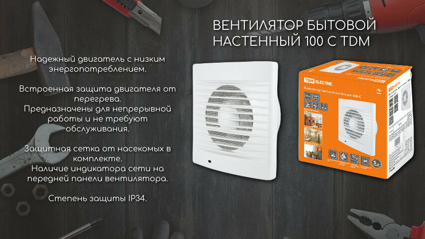Вентилятор бытовой настенный 100 С TDM (1 шт.)