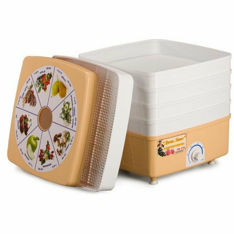 Сушилки для фруктов и овощей ротор Дива Люкс СШ-010 (5 реш. цветн.упак. квадратная)