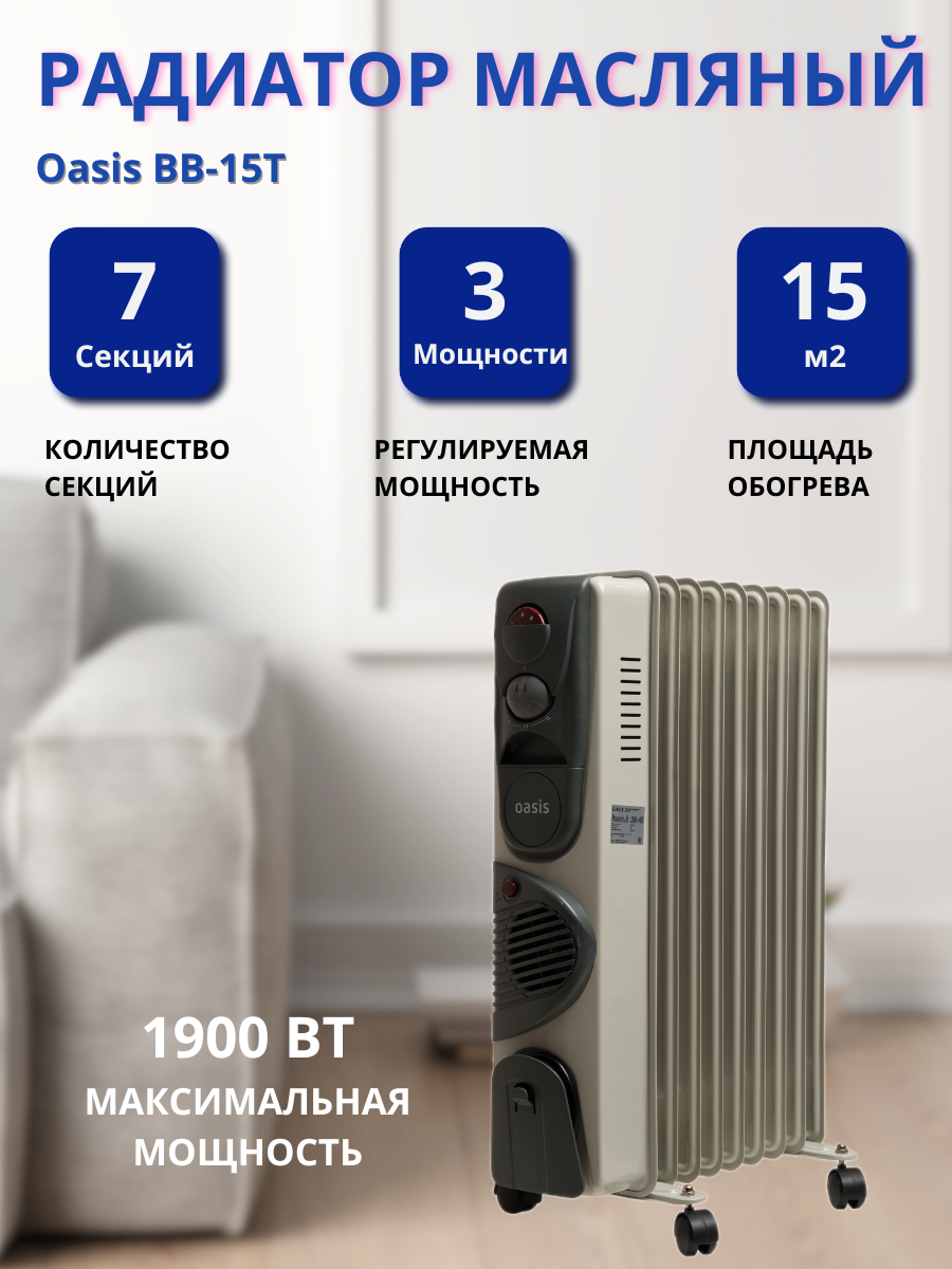 Ниже Вы можете прочитать отзывы на Масляный радиатор Oasis BB-15T 1900Вт, ознакомится с подробными характеристиками, посмотреть интересные обзоры и фотографии на Масляный радиатор Oasis BB-15T 1900Вт.