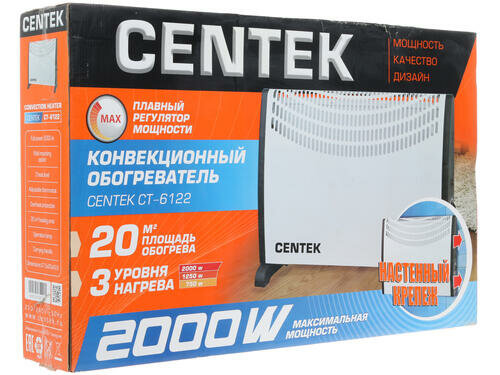 Конвекционный обогреватель Centek 2000Вт (20м), настенный крепеж, 3 режима нагрева, термозащита CT-6122