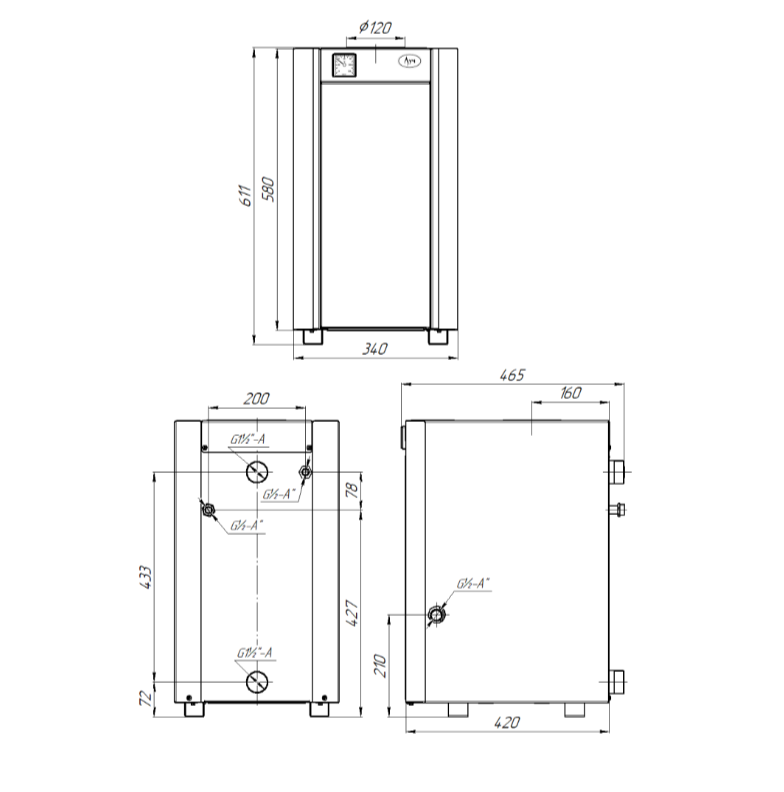 | Патрубок подключения контура отопления | 2" |