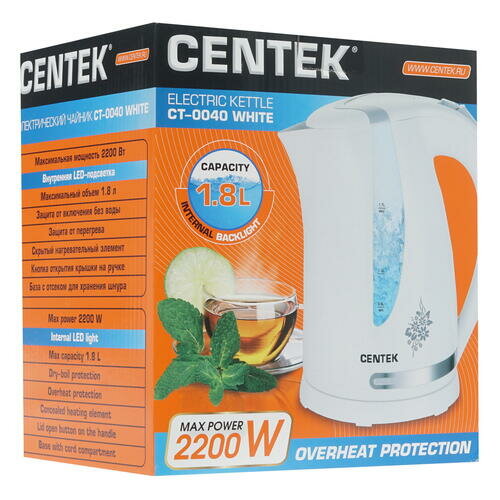 Чайник Centek CT-0040 White /1,8л, 2200Вт