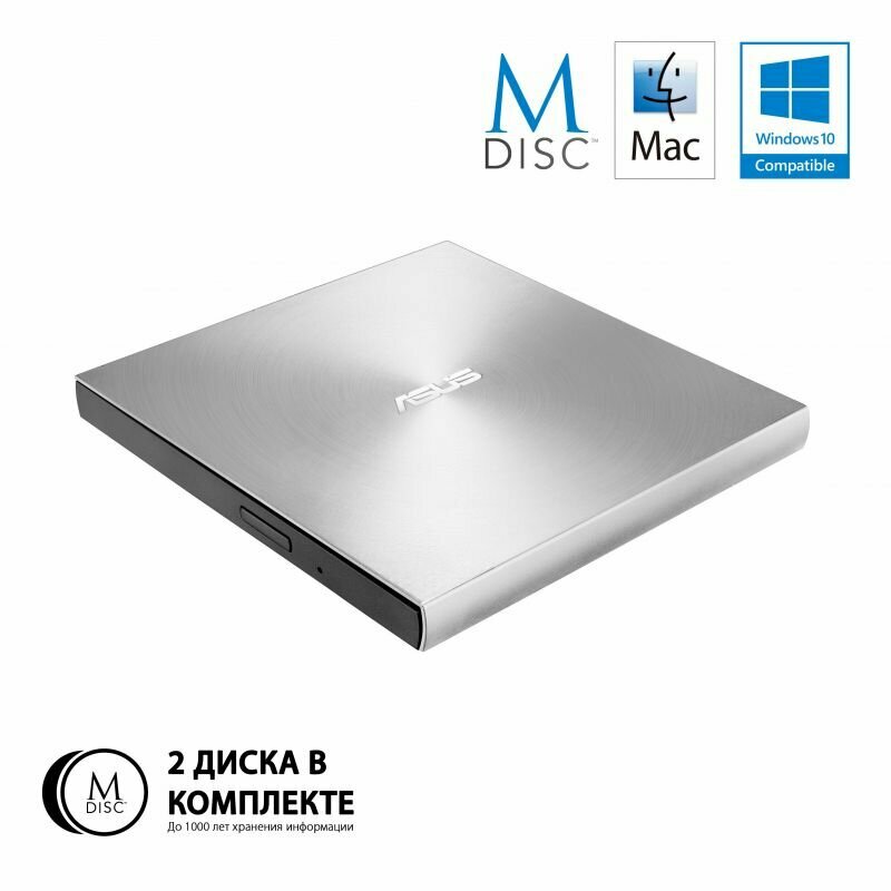ASUS Устройство чтения-записи ASUS SDRW-08U7M-U/SIL/G/AS/ ,USB, Серебристый (90DD01X2-M29000)