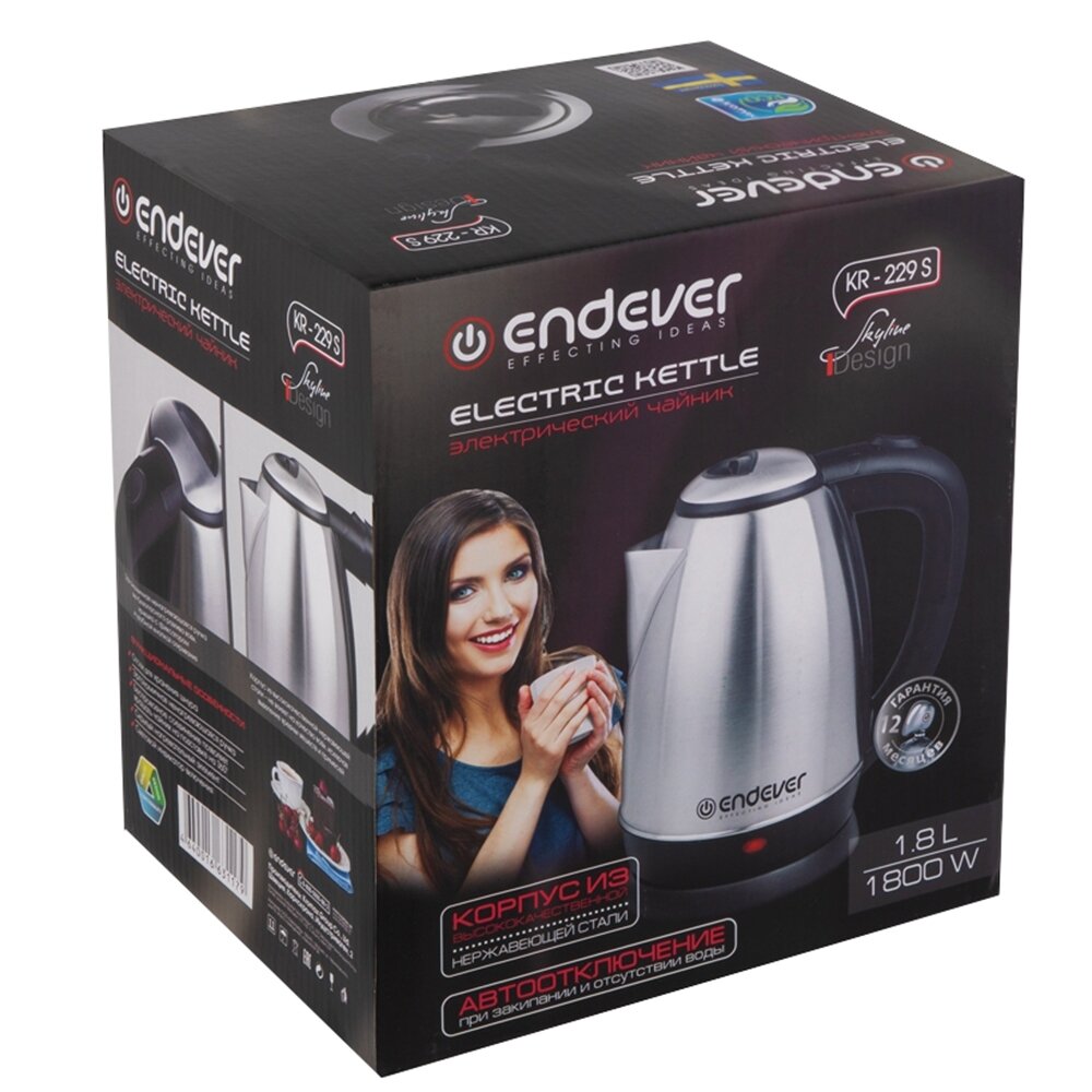 Чайник Endever Skyline KR-229S /нерж., 1800Вт, 1,8л/