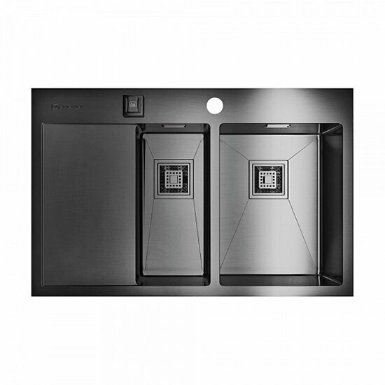 Кухонная мойка OMOIKIRI Akisame 78-2-GM-R 4973102 (780 x 510 мм), врезная, нержавеющая сталь, вороненая сталь