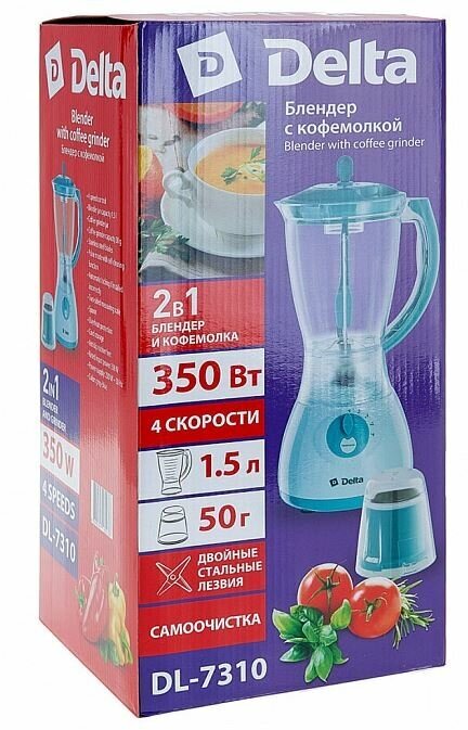 Блендер с кофемолкой DELTA DL-7310 серо-голубой : 350Вт, чаша 1,5л., кофемолка 50 г (6)