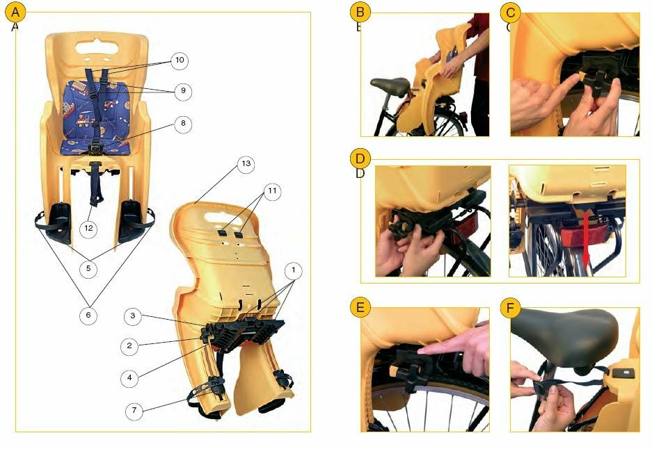 | Плюсы: | Крепкое, эластичный пластик. Удобное крепление. Ремни тоже удобное. Регулятор подставок для ног по высоте. |