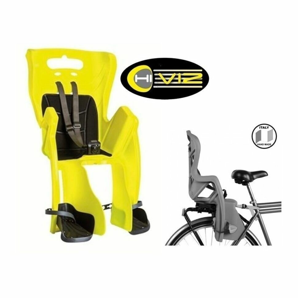 Сиденье детское кресло на велосипед 0-280235 на багажник Little Duck (3) Hi-Viz, светоотр. до 7лет/22кг TUV BELLELLI (Ит)