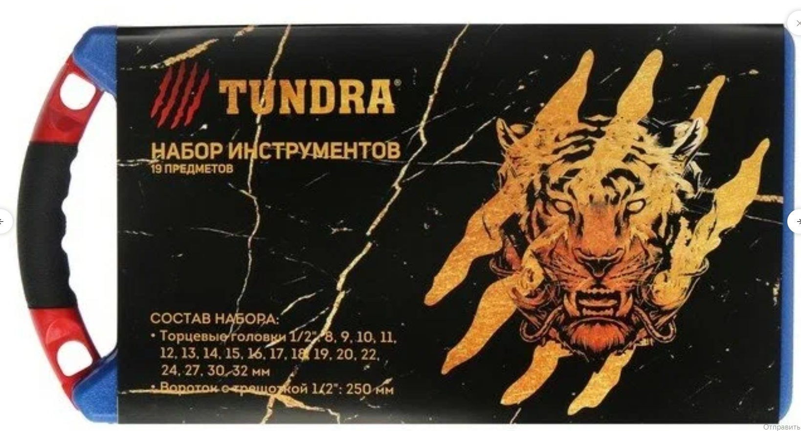 Тундра Набор инструментов в кейсе тундра, подарочная упаковка "Тигр", CrV, 1/2", 19 предметов
