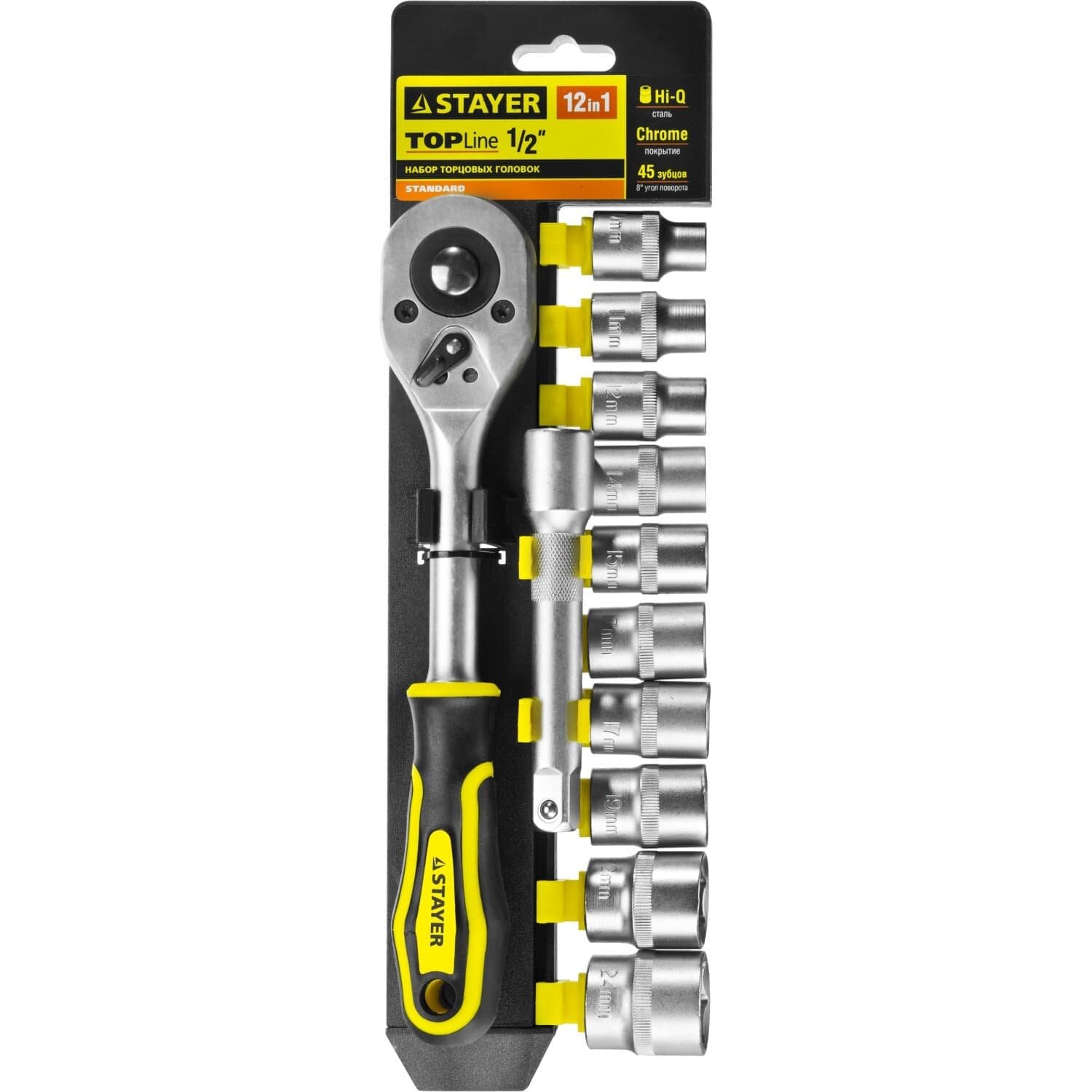 Stayer Набор трещотка и торцевые головки 1/2" 10-24мм STAYER 27750-H12