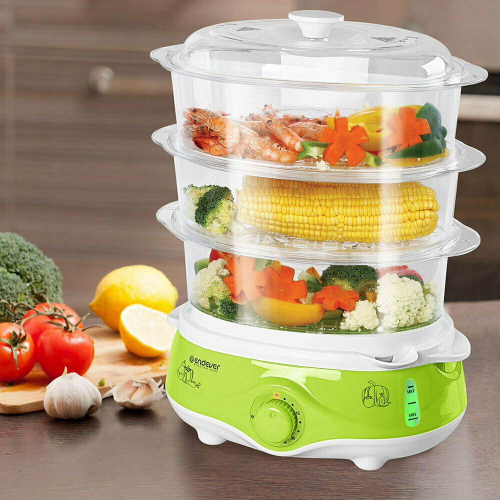 Пароварка Endever Vita-171 3ярус. 1000Вт белый/зеленый