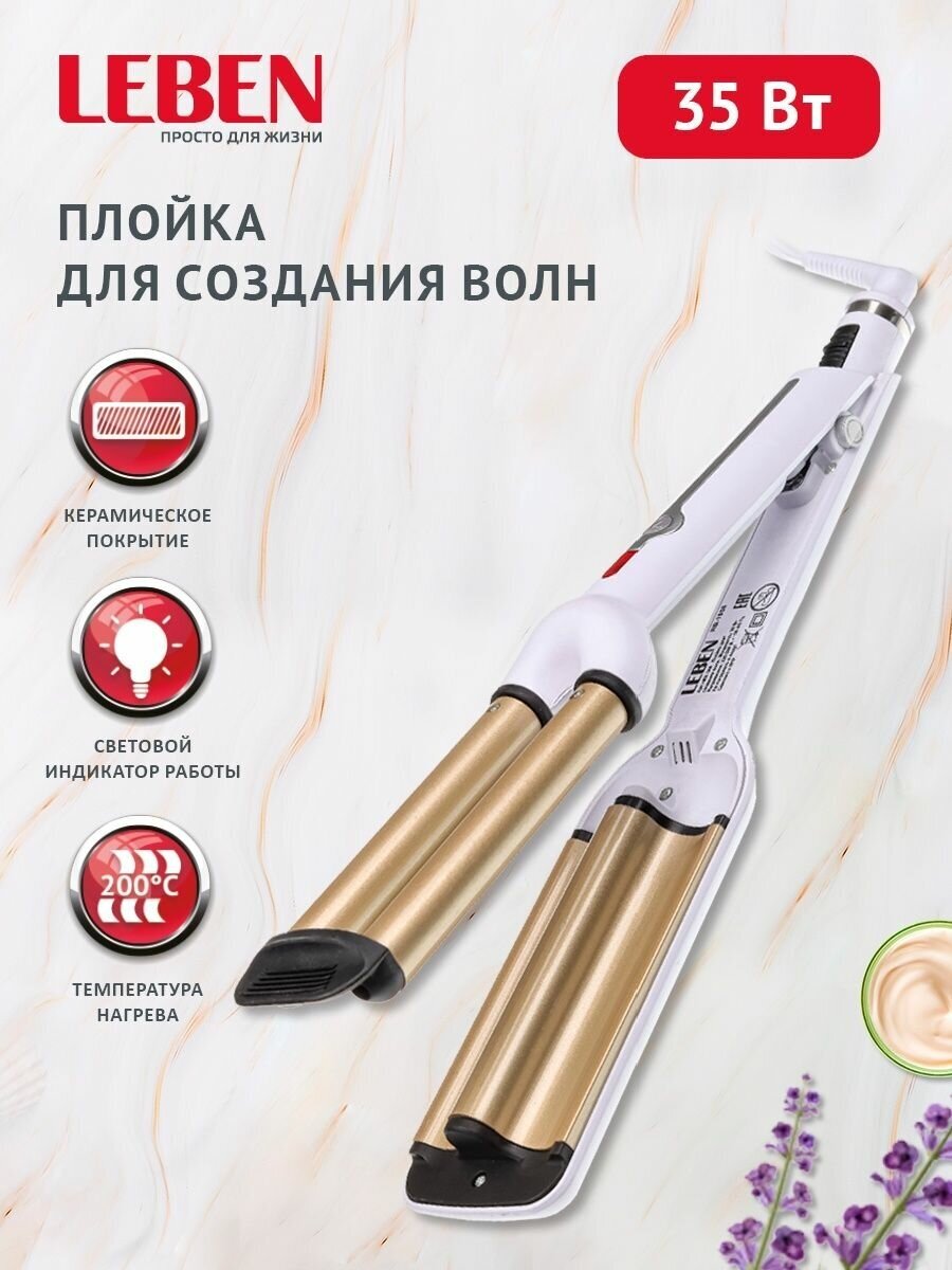 LEBEN Плойка для создания волн, 1 режим нагрева, длина рабочей поверхности 15см, 220-240В, 35Вт