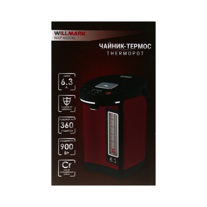 Термопот WILLMARK WAP-602CKL, 6.3 л, 900 Вт, вишнёвый