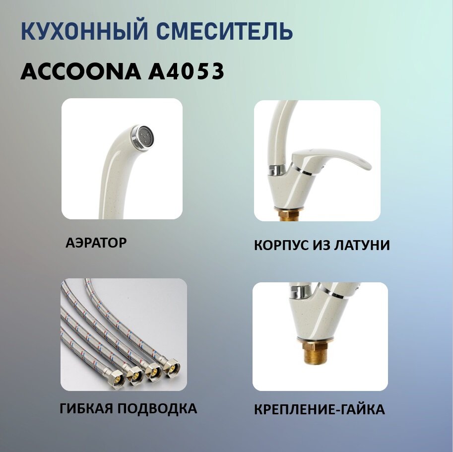 Смеситель для кухни Accoona A4053E, однорычажный, бежевый, глянец Accoona 1174278 .