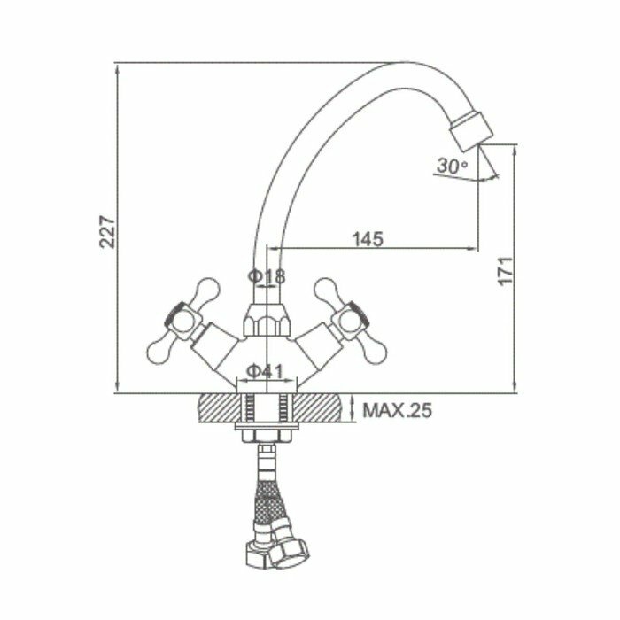 Cмеситель для кухни A4078, двухвентильный, с гайкой, латунь, хром
