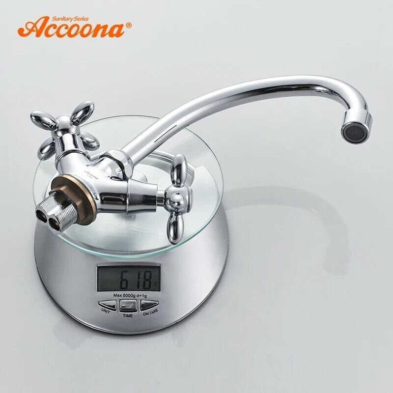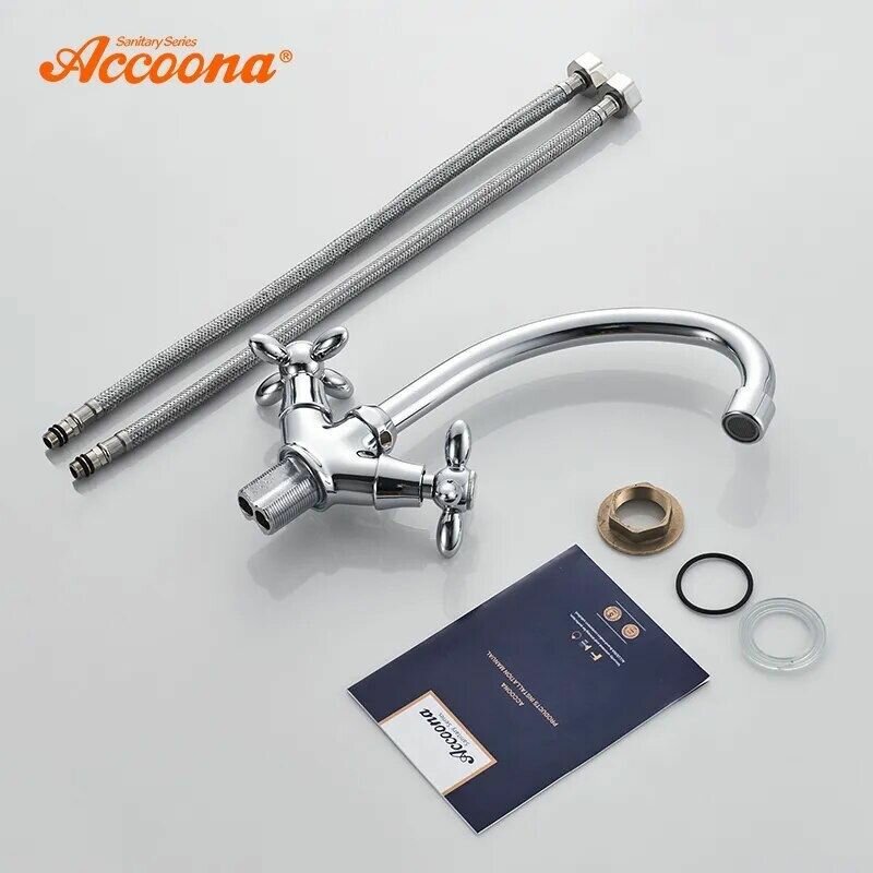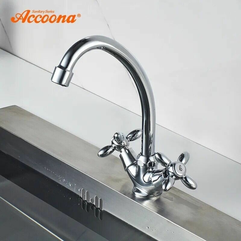 Accoona Cмеситель для кухни Accoona A4078, двухвентильный, с гайкой, латунь, хром