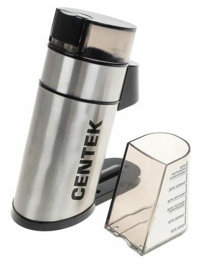 Кофемолка Centek CT-1359 (сталь) 250Вт, 70 г, 7 чашек, уникальная форма, прозрачная крышка