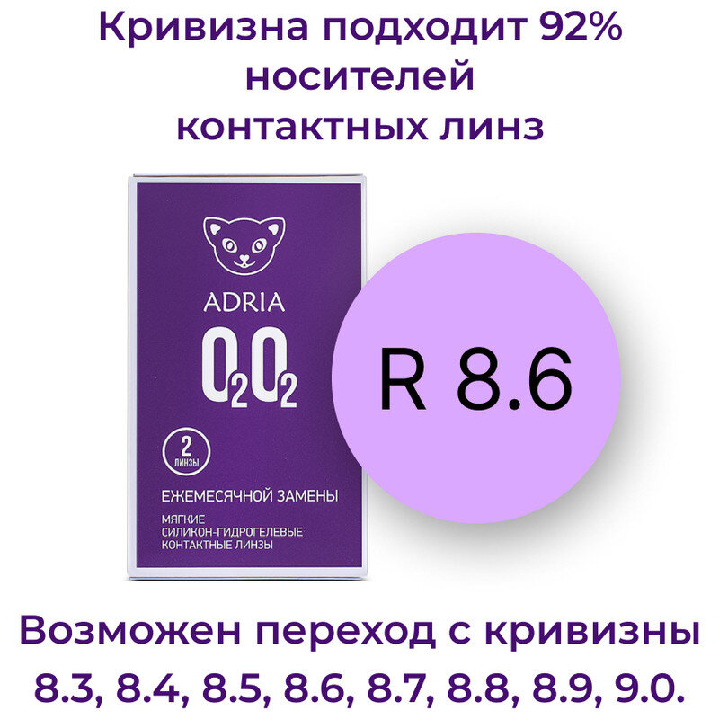 Контактные линзы ADRIA O2O2, ежемесячные, -8,50 / 14,2 / 8,6 / 2 шт.