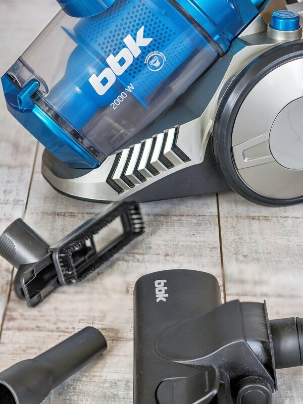 Пылесос циклонный BBK BV1506 темно-серый/синий, мощность 2000 Вт, нера фильтр, мощность всасывания 320 Вт, объем пылесборника 2.5 л, 3 насадки в комплекте