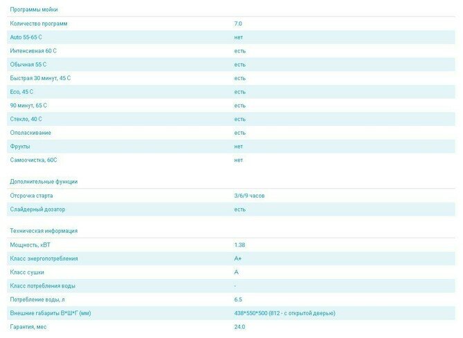 | Плюсы: | Среди компактных и откровенно говоря дешёвых посудомоек конкурентов почти нет. |