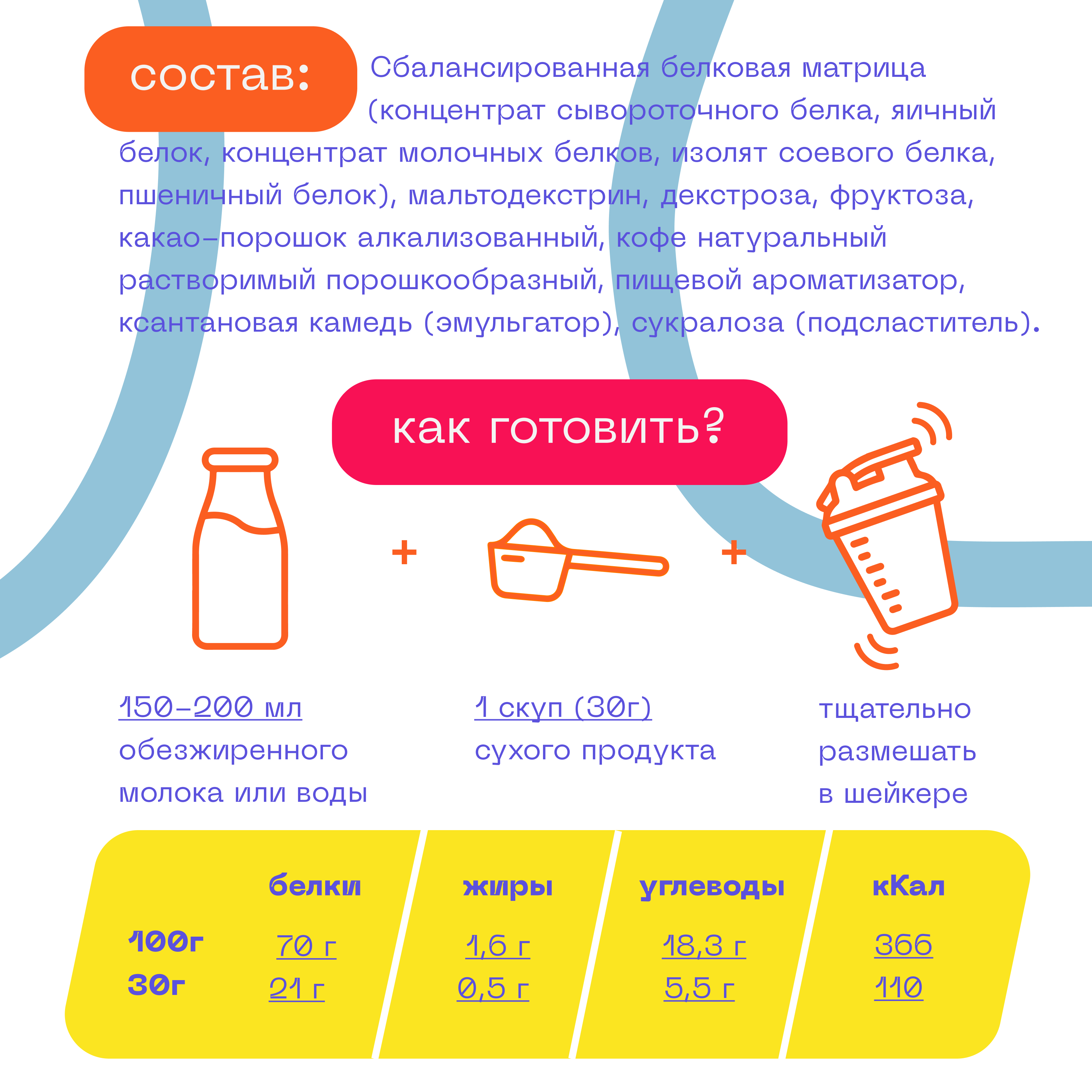| Плюсы: | Отлично взбивается, не химозный, отлично заменяет завтрак |
