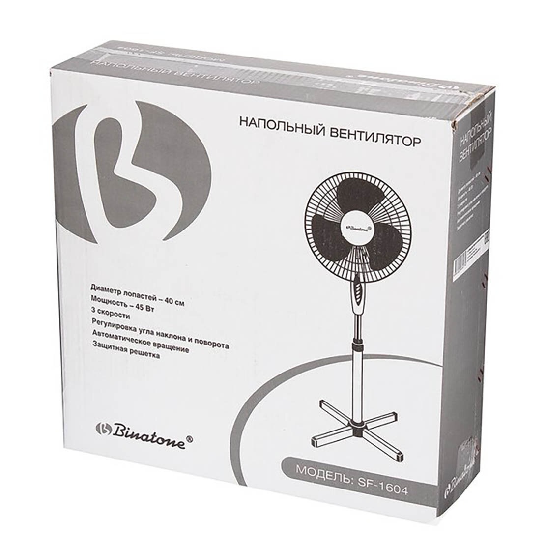 Вентилятор напольный BINATONE SF-1604, белый и серый(плохая упаковка)