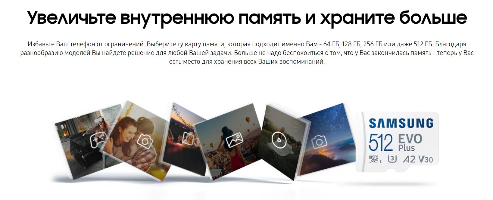 Карта памяти Samsung EVO Plus microSDHC 512 ГБ A2, UHS Class 1 запись - 130 Мбайт/сек
