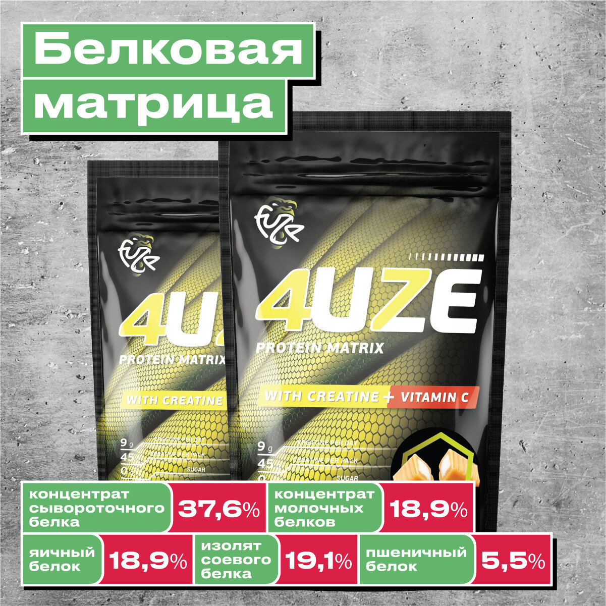 4UZE Протеин «Фьюз 47% + креатин», вкус «Молочный шоколад», 750 гр, 4UZE