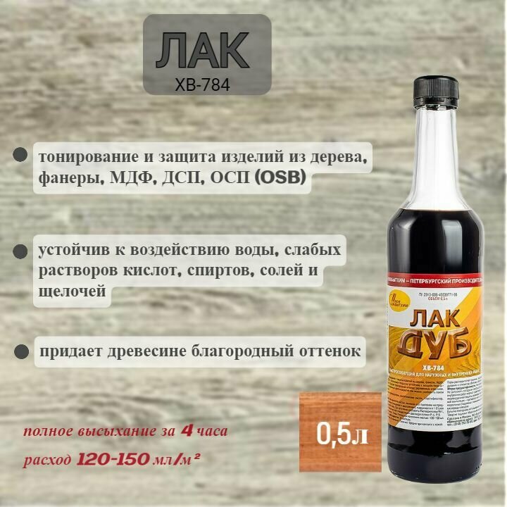 Лак ХВ-784 для дерева дуб 0,5л Новбытхим ТУ 2313-006-45539771-98