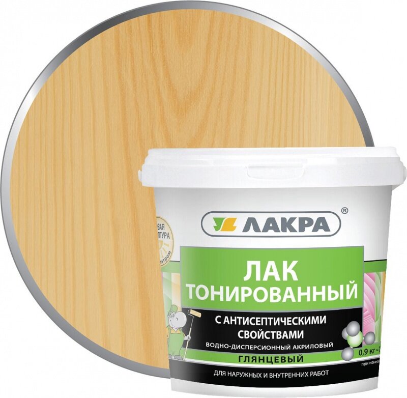 Купить Лак Лакра Тонированный с антисептическими свойствами бесцветный, глянцевая, 0.9 кг, 0.9 л