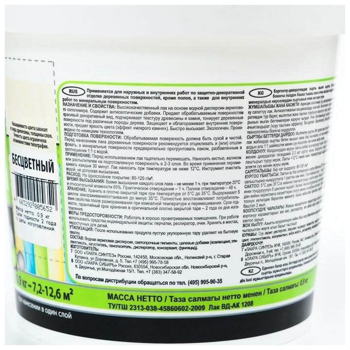 Лак акриловый лакра 0,9кг сосна, арт.лт-сосна0,9