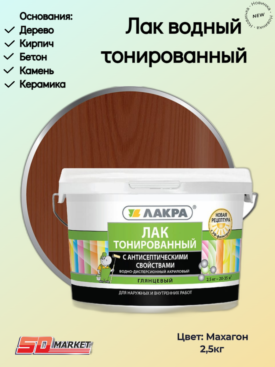 СохранитьЛак Лакра Тонированный с антисептическими свойствами махагон, глянцевая, 2.5 кг, 2.5 л интересное: