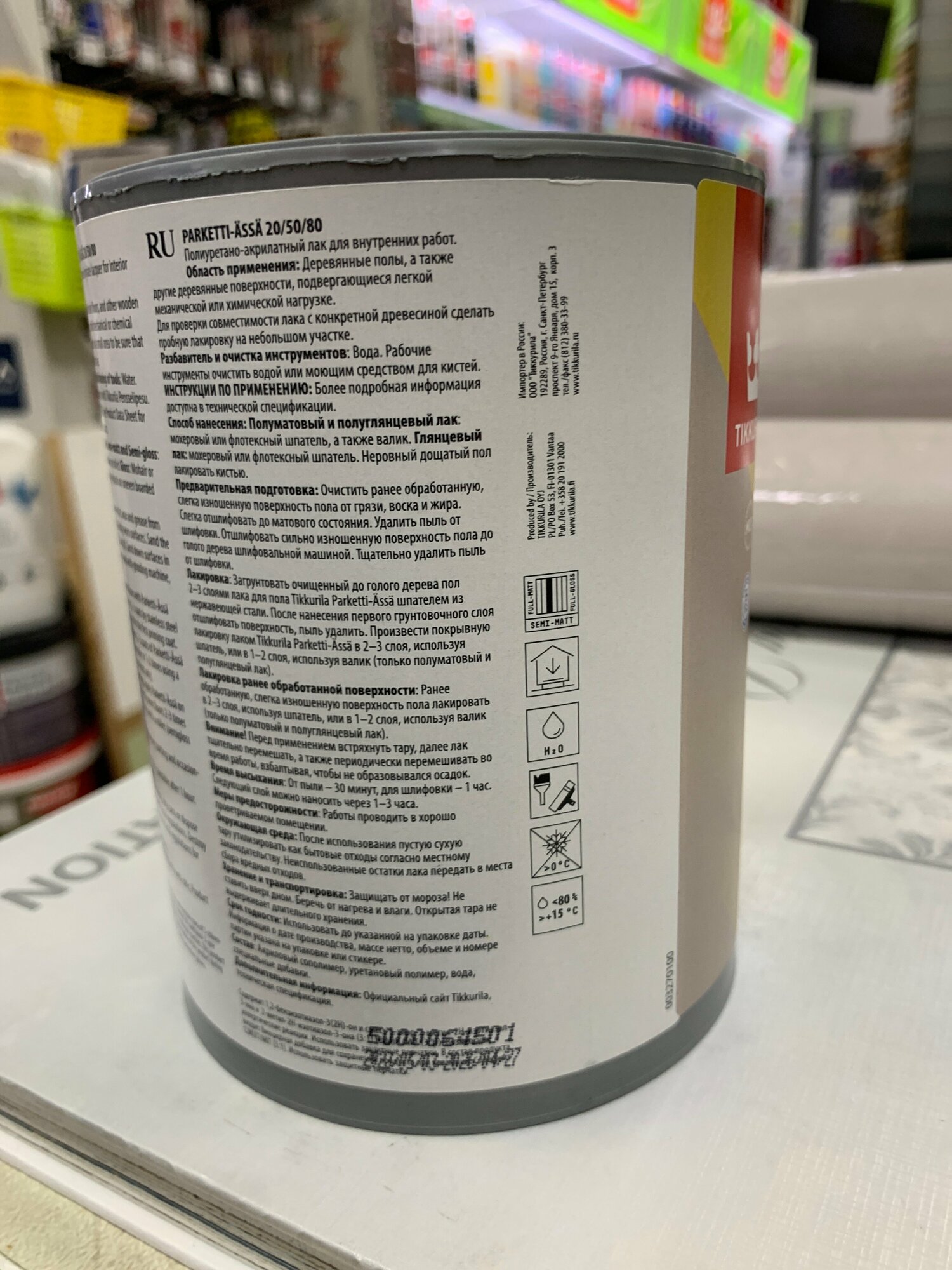 Паркетный лак TIKKURILA Parketti-Assa 20 полуматовый 1 л.