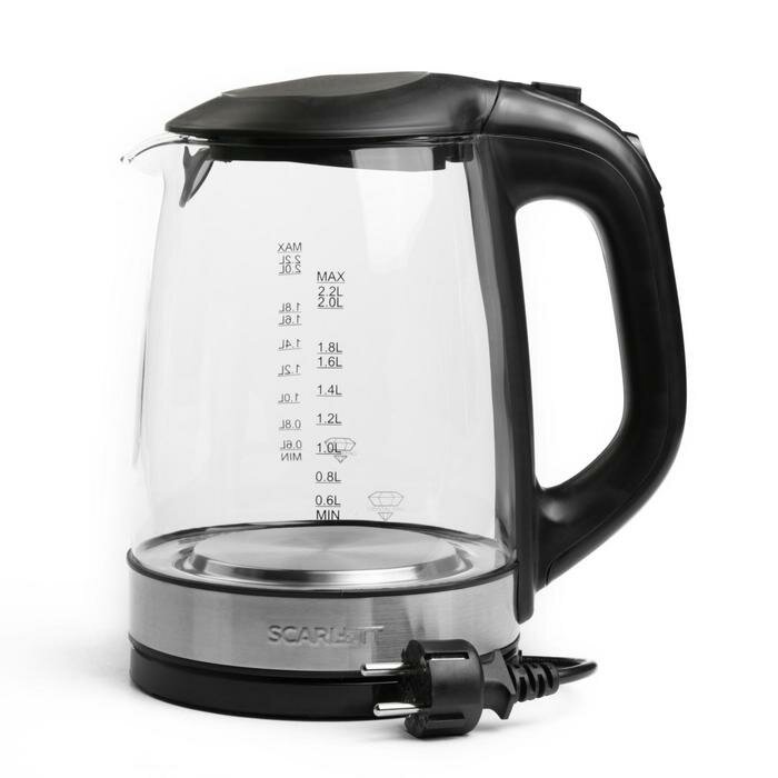 Scarlett Чайник электрический Scarlett SC-EK27G19, стекло, 2.2 л, 1850-2200 Вт, подсветка, черный
