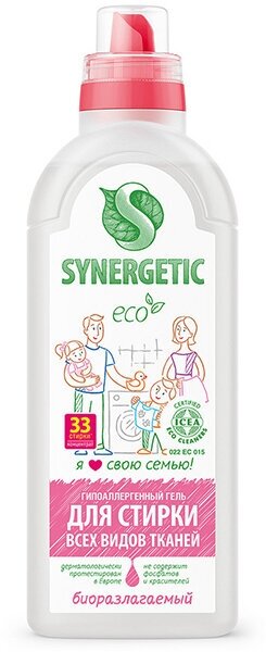Гель для стирки универсальный 1 л SYNERGETIC гипоалергенный, биоразлагаемый, 109100