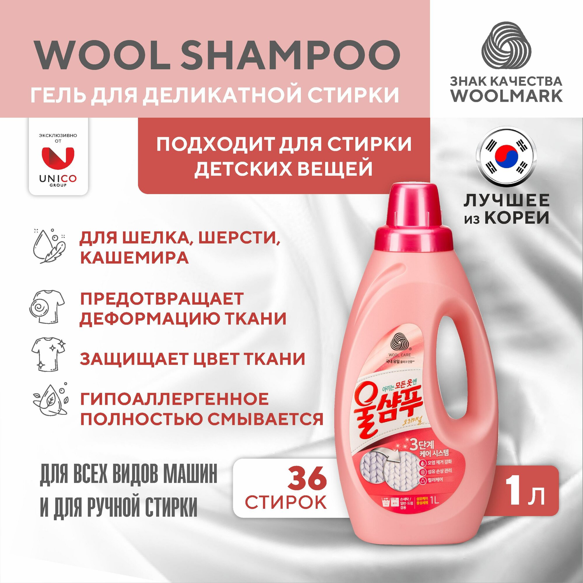 Wool shampoo жидкое средство для стирки, оригинальное, 1 л