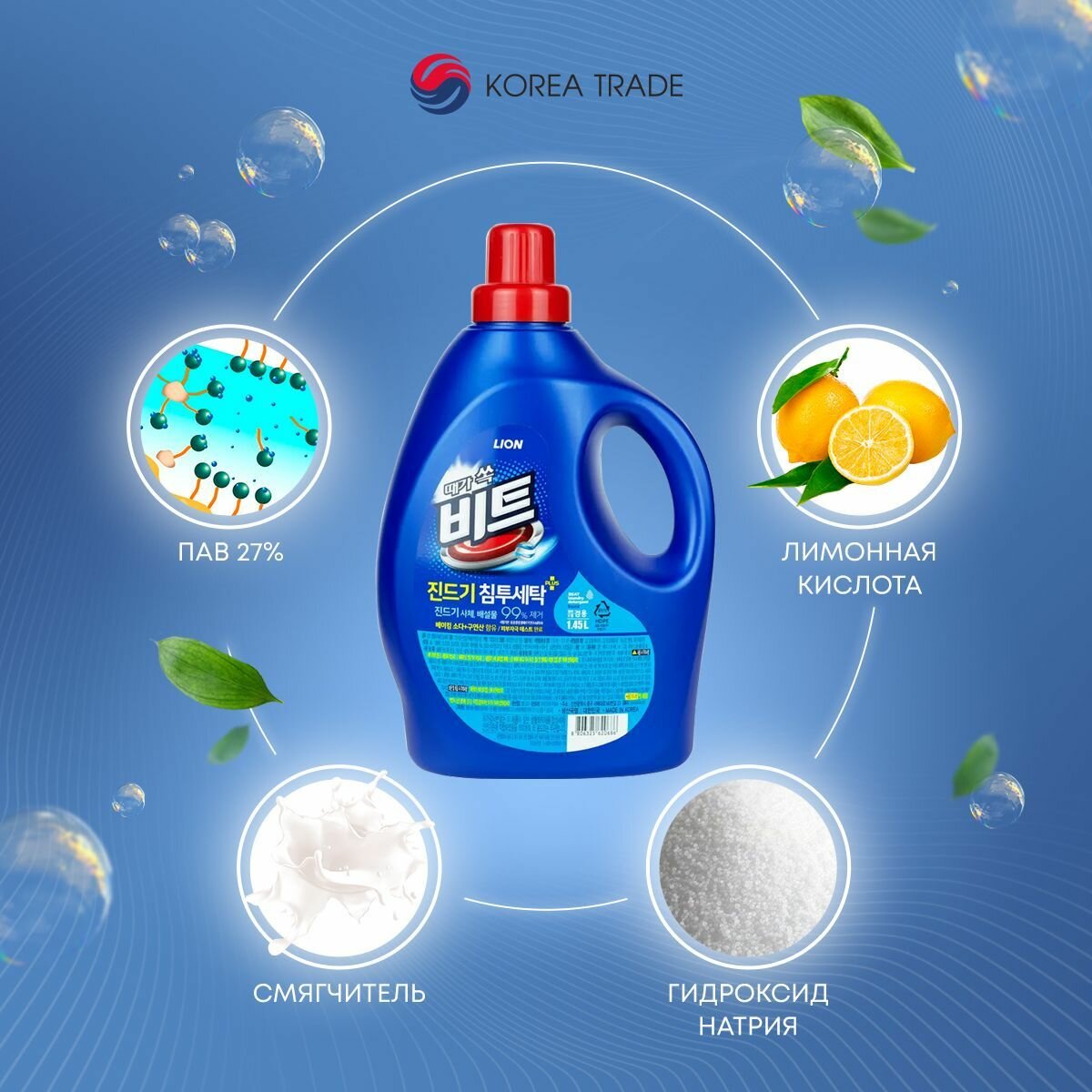 Жидкость для стирки, концентрат для стрики белого и цветного белья с антибактериальным эффектом LION Beat 1.45 Л.