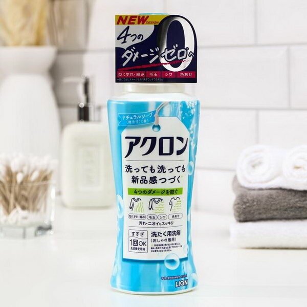LION Жидкое средство для стирки ACRON деликатных тканей, шерсти, аромат мыла, 450 мл. бутылка с колпачком-дозатором